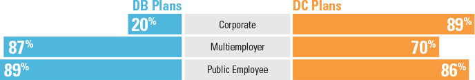 Percentage of organizations offering defined benefit (DB) pension plans vs. defined contribution (DC) retirement plans